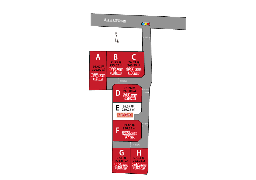 | 土地面積 | 221.88m2 (67.11坪) ~ 326.02m2 (98.62坪) | |